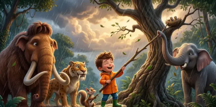 Egy puha, esős délután Balázs a Mesefa alá kuporodott. A fű illata friss volt, a leveleken apró esőcseppek csillogtak, mintha pici gyémántok hintáznának rajtuk. A szél halkan susogott a lombok között, a faágak pedig úgy ringatóztak, mintha egy láthatatlan altatódalt
