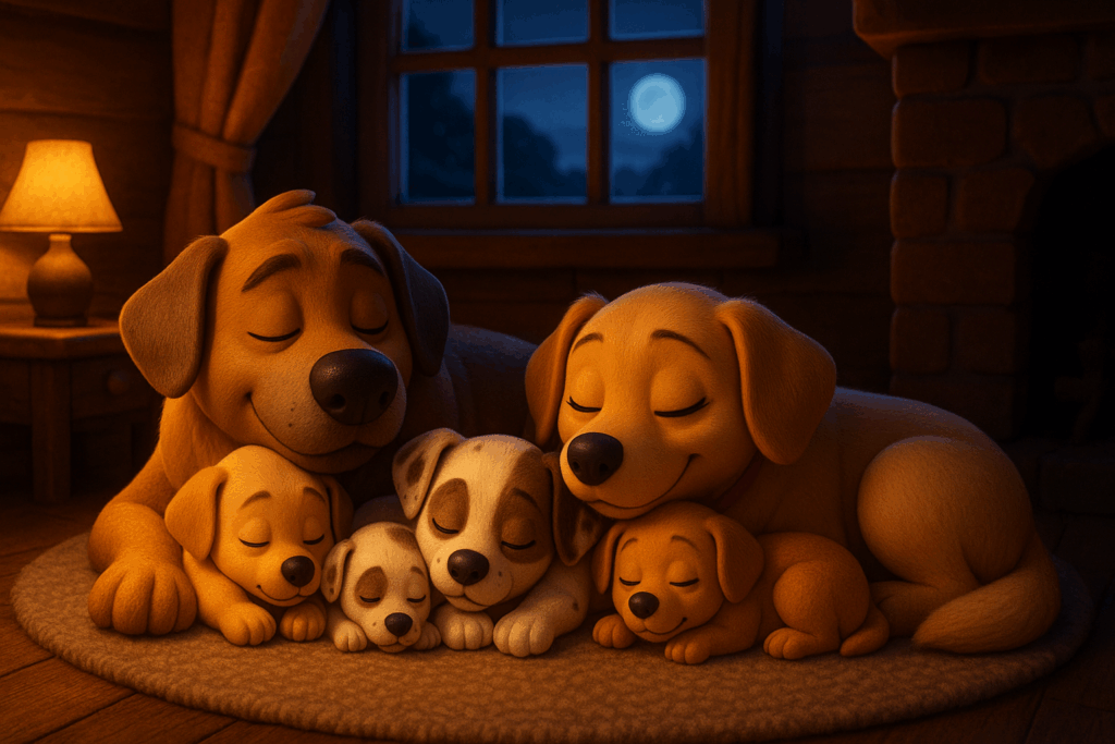 Egy faluszéli kis házban élt egy kutyacsalád: Bodri, a bölcs apuka, Luna, a gondoskodó anyuka, és három játékos kölyök – Pici, Folti és Csilla.
