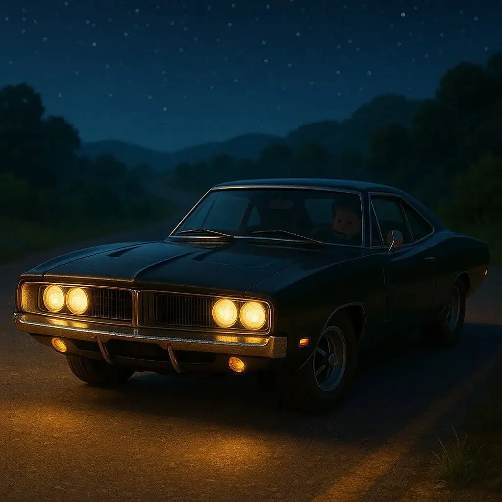 Valahol a hegyek között, egy csendes garázs mélyén állt egy öreg, de büszke fekete Dodge Charger. Az autó csillogó fekete fényezése sötétebb volt az éjszakánál is. A neve Dörgés volt – nem véletlenül.