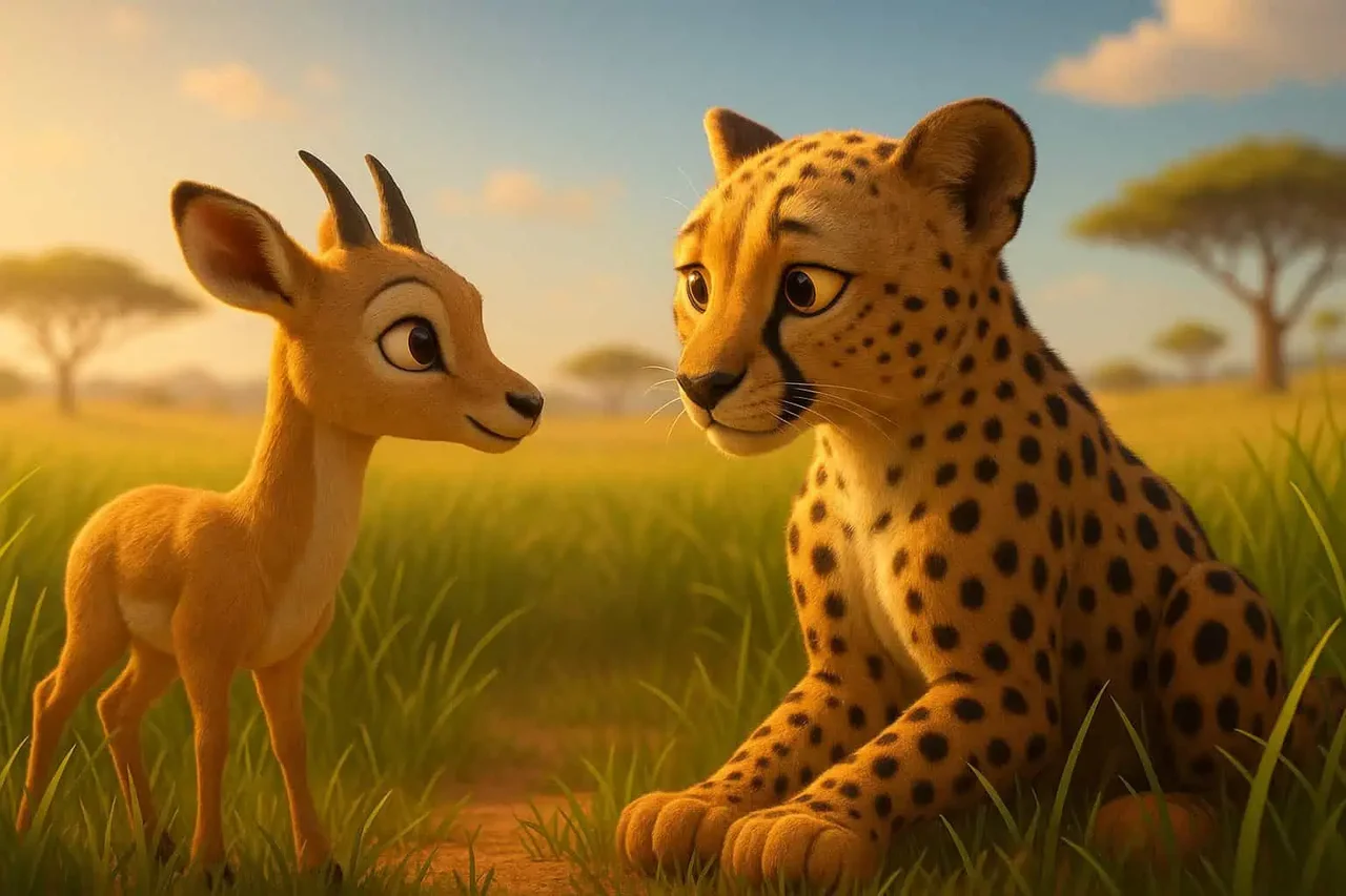 A messzi szavannán, ahol aranyló fű táncol a meleg szélben, élt egy kis gazella, Lina. Lina fürge volt, játékos, és mindig figyelt. Nem azért, mert félt, hanem mert így tanulta: ha meglátsz valakit, aki gyorsabb nálad – szaladj!