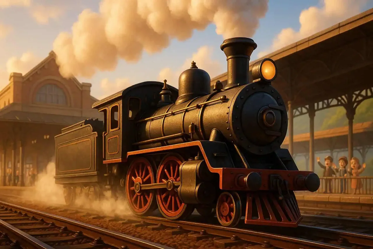 A kis mozdony elkerekedett szemmel figyelt. Másnap kipróbálta: a kazánjába vizet töltöttek, a fűtő szenet lapátolt a tűzbe, és amikor a víz felforrt, hangos szisszenéssel indult meg a gőz. A kerekek kattogtak, és a mozdony boldogan robogott előre.
