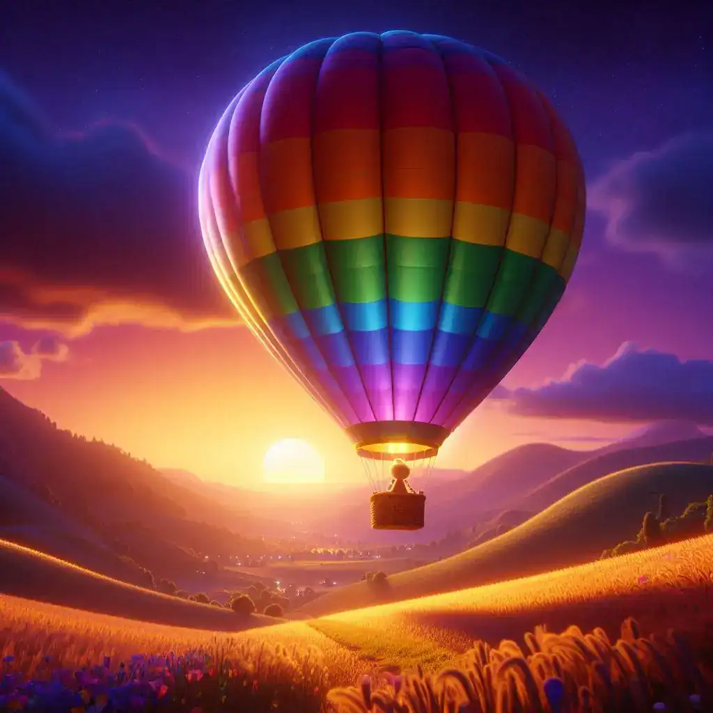 Messze egy vidám kis faluban, a domb tetején állt egy öreg hőlégballon. Már nem repült minden nap, hiszen sok kalandban vett részt az évek során, de vászna még mindig színpompás volt: piros, kék, sárga és zöld csíkok futottak rajta, akár egy szivárvány.