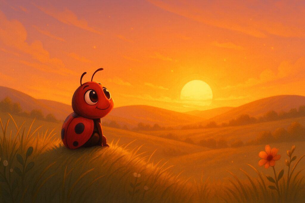 A kis bogár szíve megtelt melegséggel. Rájött, hogy bár apró, a világ, amit felfedezett, hatalmas – és minden sarkában új kérdés vár.