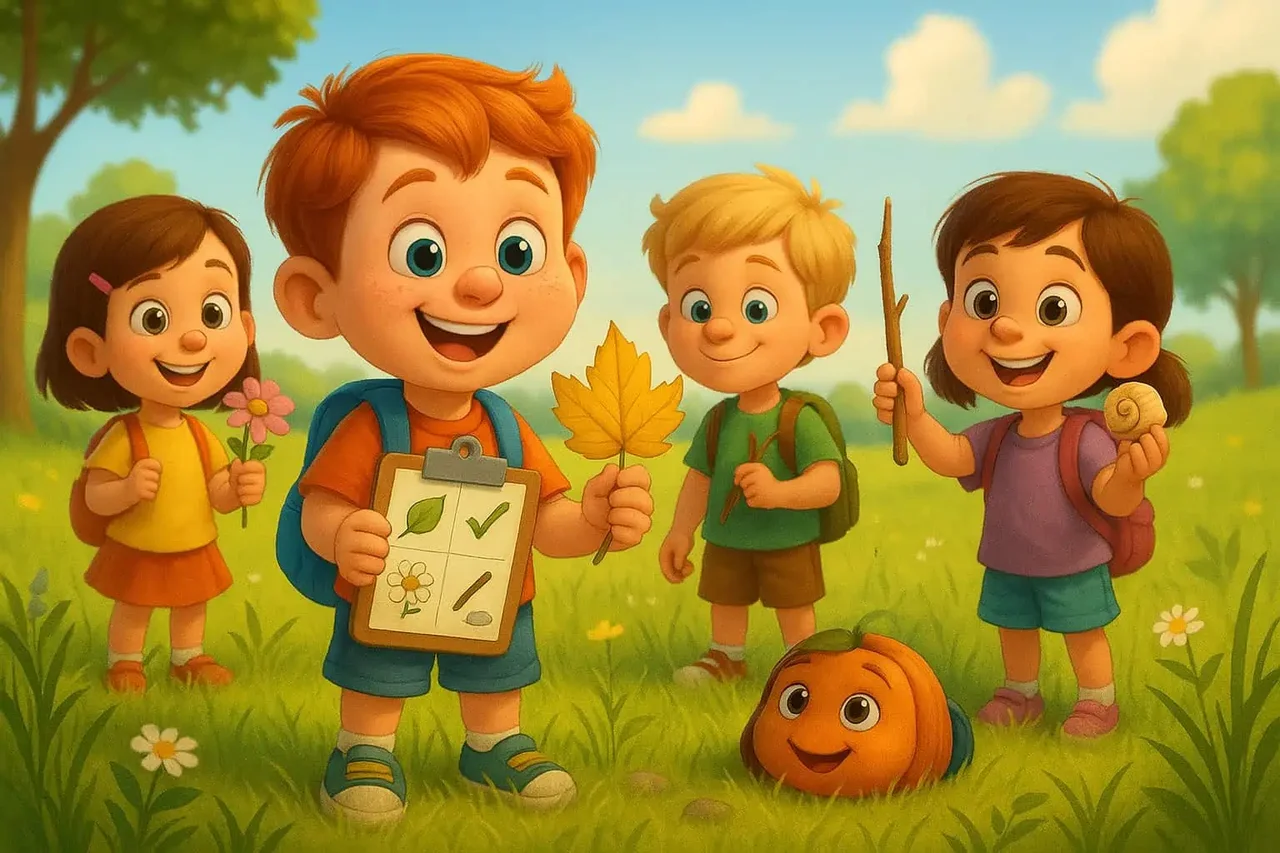 A csoport elindult a közeli ligetbe. Az erdőszéli ösvényen madarak énekeltek, és minden bokor mögött új meglepetés várt.