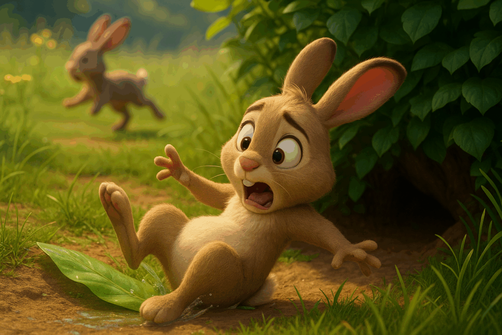 Egyik nap azonban valami más történt. Lina épp nagy lendülettel szaladt át a mezőn, amikor hirtelen megcsúszott egy nedves levélen, és beesett egy bokor alá. Nem történt baja, de nagyon megijedt.