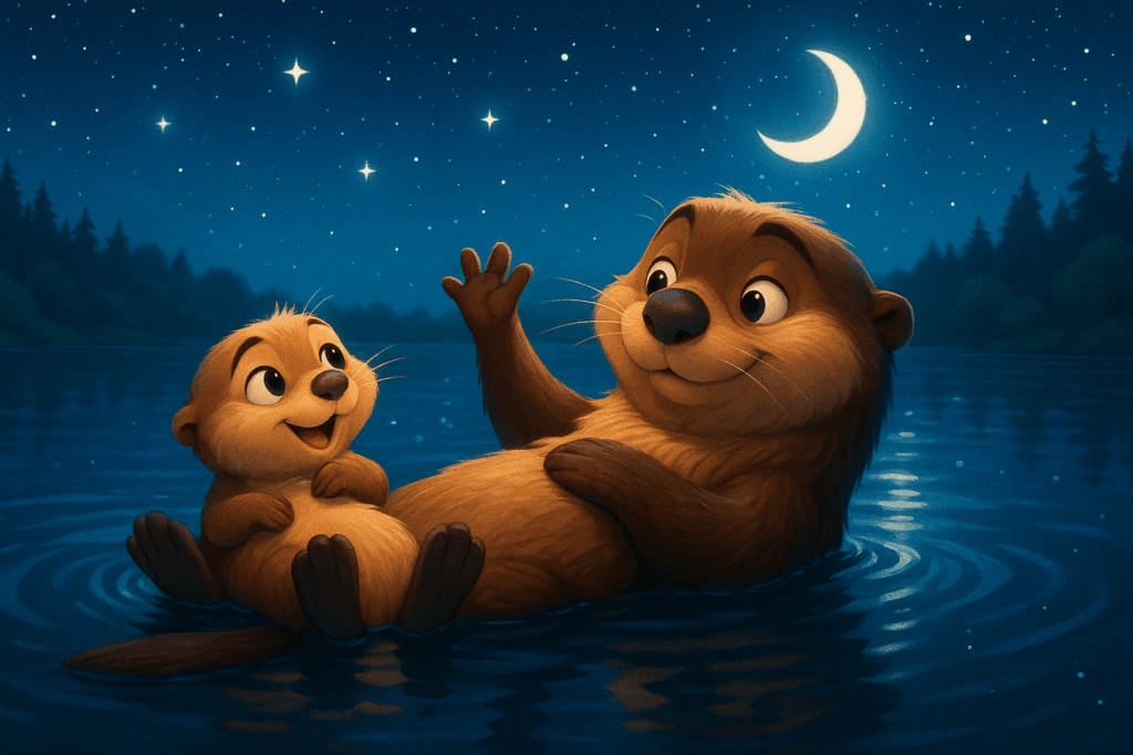 A kis vidra azonnal kipróbálta: hanyatt fordult, és a mancsával a hasán billegtetett egy kavicsot. A napfény átcsillant a víz fodrain, és ő boldogan kuncogott.