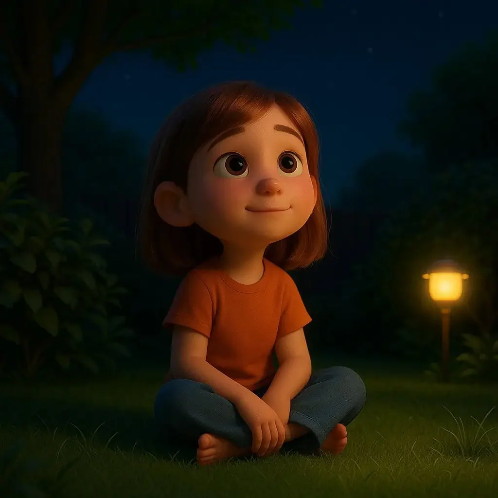 Ez a nap egy nyári este volt, és Balázs a Mesefa tövében üldögélt. Odabent már szólt a vacsora. Kint meg még mindig illatozott a meleg föld. A szél halkan zizzentette a leveleket, és egy apró kis égő a kertben pislogva világított, mintha egy manó fénye lenne.