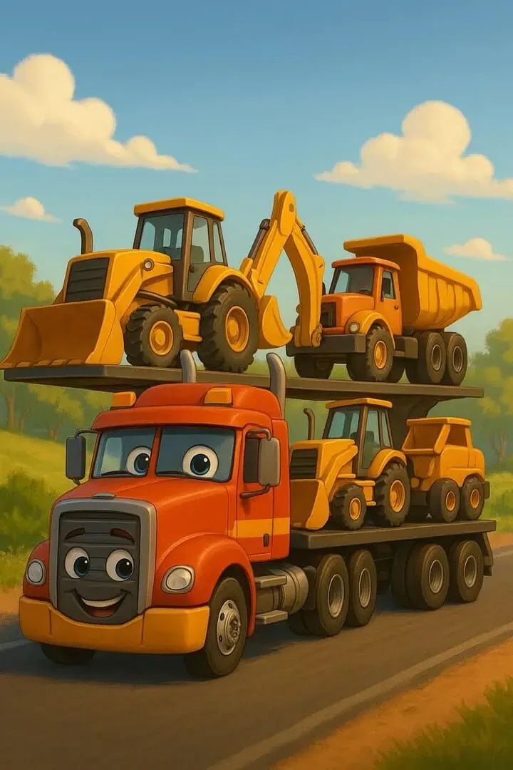 Matyi egy nagy, piros-sárga kamion volt, vastag kerekekkel, tükrökkel, és egy hatalmas platóval, amit mindig valami izgalmas dolog foglalt el: markoló, dömper, úthenger, vagy egy kis sárga kotrógép.