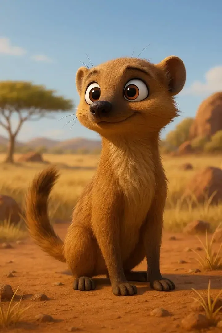 A forró, napégette szavannán, egy sziklarepedésekből álló kis birodalomban élt Miki, a mongúz. Miki apró volt, fürge, barna szőre csillogott a napfényben, és a farkát olyan büszkén tartotta, mintha zászló lenne.