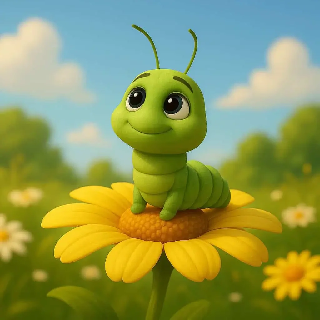 Mimi más volt, mint a többi kukac. Amikor a többiek levelet rágcsáltak, ő inkább álmodozott. Ahelyett, hogy rejtőzött volna, Mimi a virágok szirmain csúszkált, és az égre nézett.
