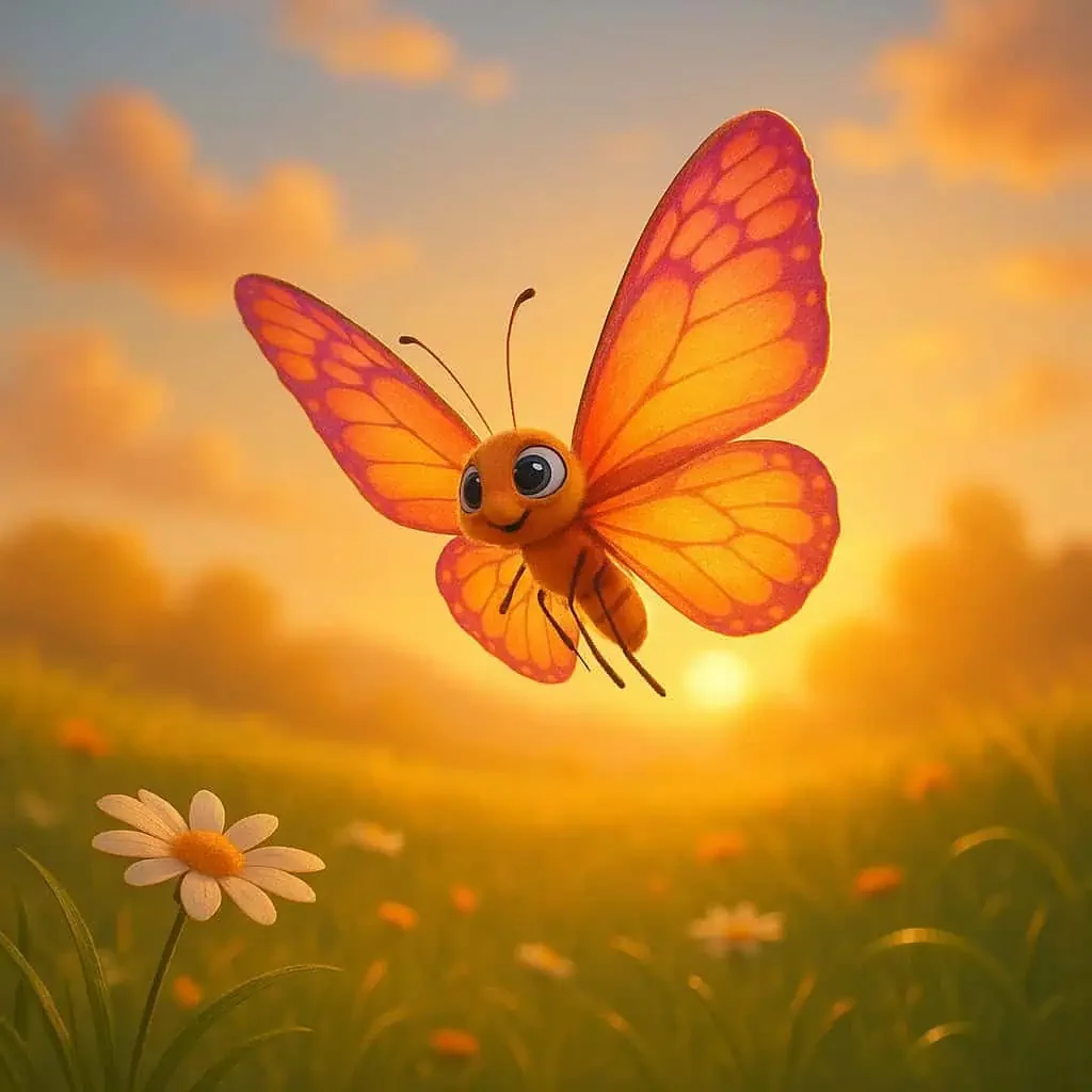 És igen – a nap megcsókolta a szárnyait. A szél játszott vele. A színei változtak, halványultak – de közben a mosolya egyre fényesebb lett.