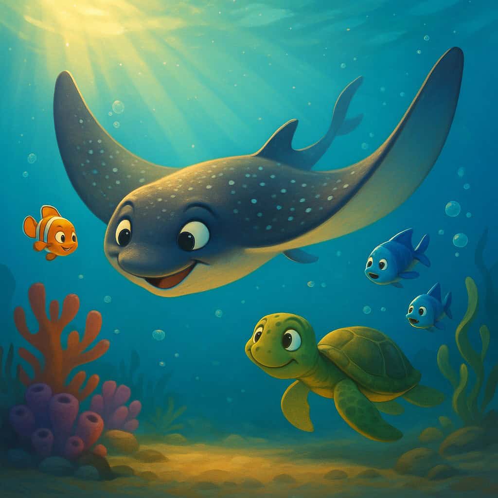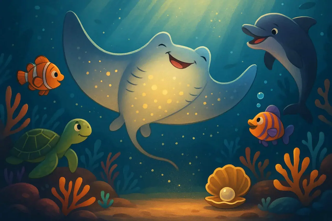 A tenger mélyén, ahol a napfény még áttör, de már lassan elhalványul, élt egy fiatal rája. A neve Csillám volt, mert a hátán apró pöttyök úgy szikráztak, mintha csillagok lennének.