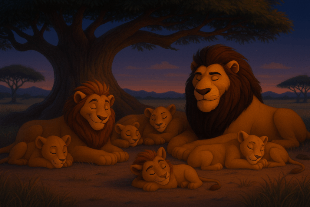 Egy délután, amikor a nap már lejjebb hajolt, Balázs a Mesefa alatt üldögélt. A fák között játszott a fény, és a levegő olyan meleg volt, mint egy puha takaró. Balázs egy oroszlános könyvet nézegetett.