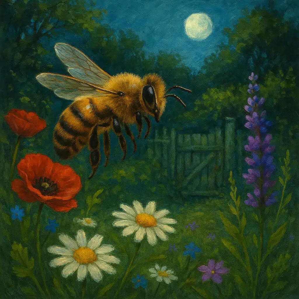 Másnap elővette régi locsolóját, levágta a legnagyobb gazokat, és hagyta a vadvirágokat szabadon nőni. A kert újra élettel telt meg — mindezt egyetlen kis méhecske kezdte el.