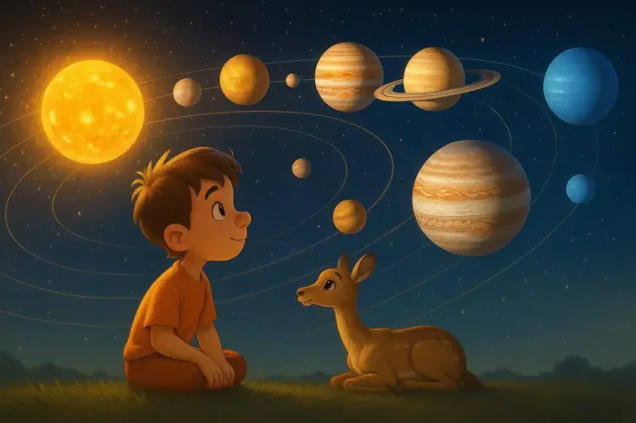 Egy késő nyári estén Balázs a Mesefa alatt feküdt, és hallgatta a tücskök ciripelését. A nap már lement, csak a narancsszín ég alján derengett még