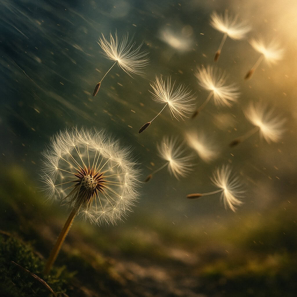 Akkor vette észre, hogy körülötte egy apró pitypang magvai repülnek. Ő maga fújta el őket — és most látta, hogyan születnek új virágok ott, ahová sodorta őket.