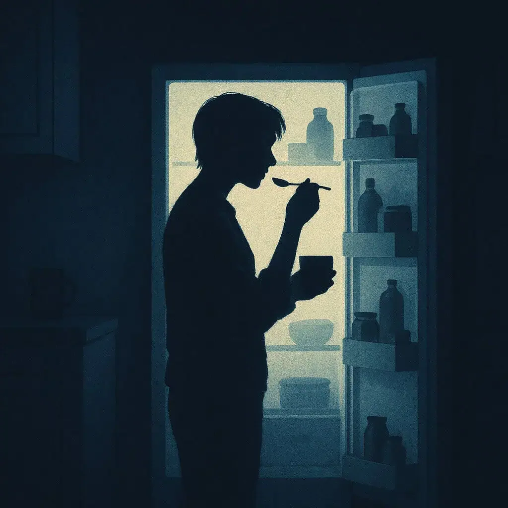 Nem úgy indul, hogy “ma éjjel, 22:47-kor bekapok három kanál nutellát”. Nem. Az úgy kezdődik, hogy csak kimész egy pohár vízért. Aztán véletlenül meglátod a sajtot. Vagy a maradék sütit. Vagy azt a valamit, amit már délelőtt kinéztél, de akkor még erős voltál. Most viszont – már nem is kérdés.